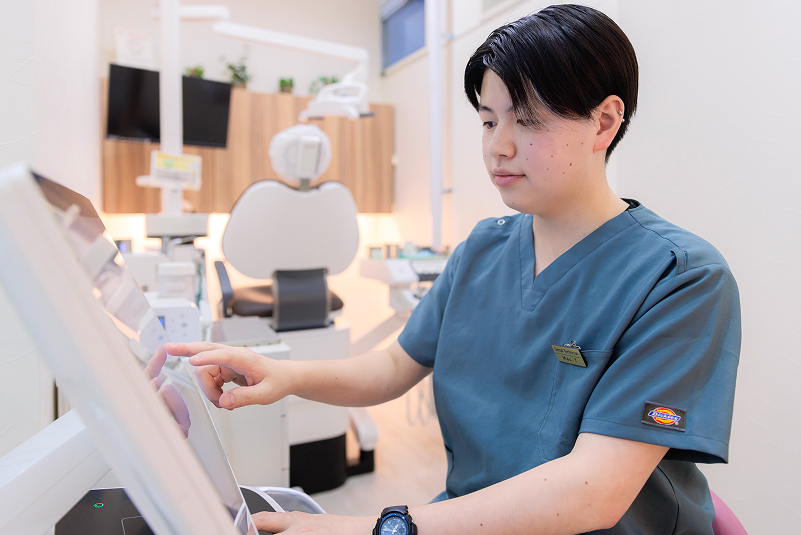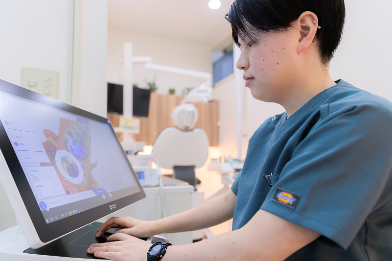 特に審美歯科では、見た目の美しさと機能性の両立が求められるため、技工士が患者さまのご希望を直接うかがい、歯の色や形を細かく調整できることが大きな強みです。また、衛生士が治療前後に歯のクリーニングや歯ぐきの状態を整えることで、見た目の仕上がりはもちろん、長期的な安定性にもつながります。各職種が連携することで、精度の高い治療と、再治療のリスク軽減を実現しています。