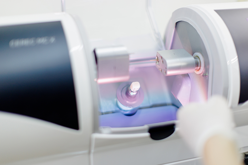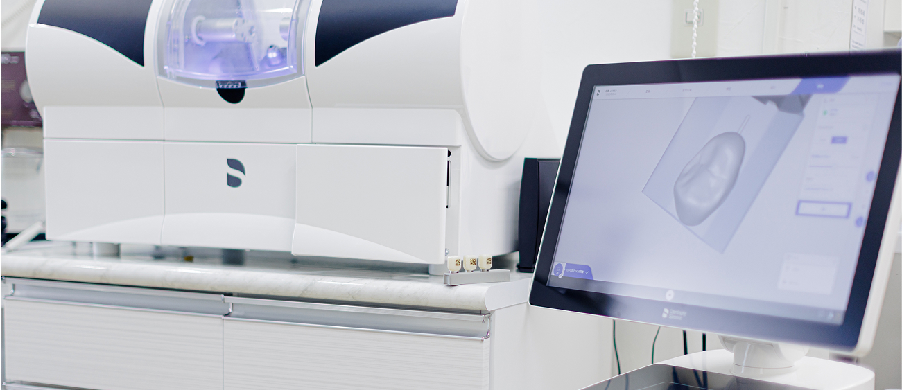 当院では、コンピューター上で詰め物や被せ物の設計から製作までを一貫して行うCAD/CAMシステムを導入しています。自由診療であれば最短即日、保険診療でも数日で修復物の製作が可能です。